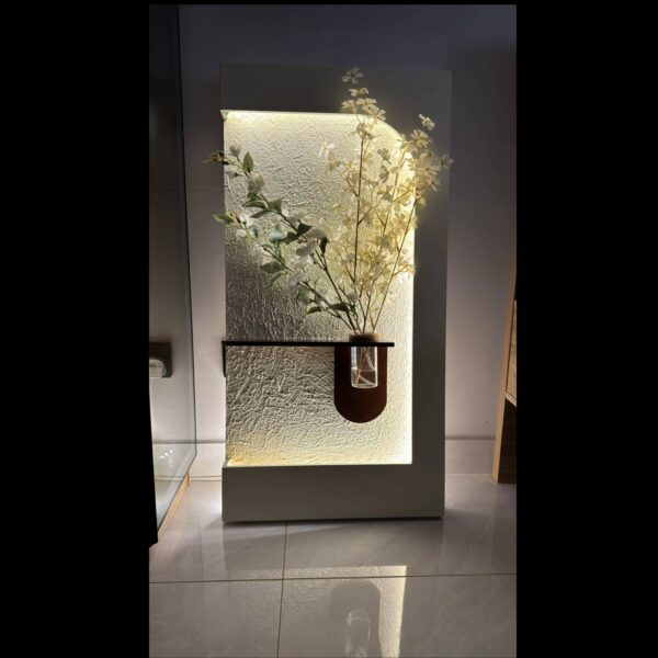 Élégante décoration murale moderne avec éclairage LED intégré et vase suspendu en verre. Un mélange de minimalisme et de sophistication pour sublimer votre intérieur.